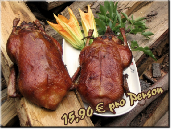 gefüllte Flugente aus dem Erdräucherofen